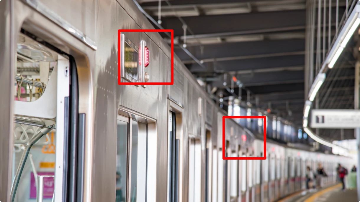 - 鉄道車両の車側灯の点灯・消灯をホームに設置された監視カメラ画像から検知し、安全確認などの車掌業務を補助するシステムを開発しました。